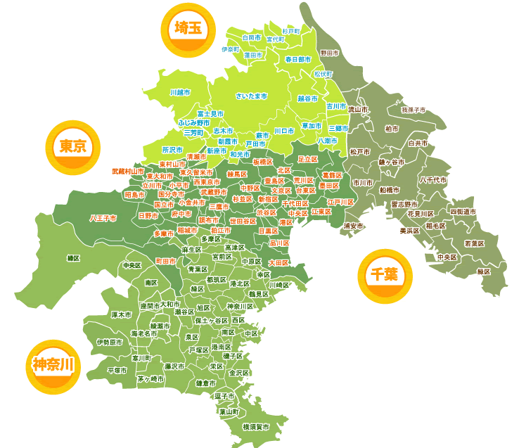 現在の対応(転出&転入)エリアは下記のとおりです。エリア内での引越業者をお探しなら、ぜひご連絡ください。